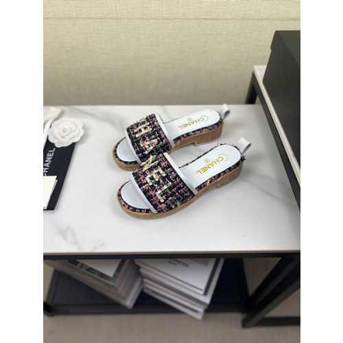 샤넬 로고 트위드 슬리퍼