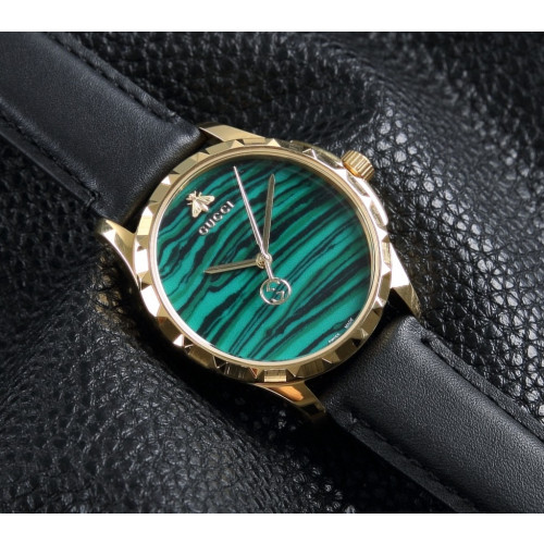 골드 컬러의 케이스와 12시 위치에 위치한 벌 심볼이 특징