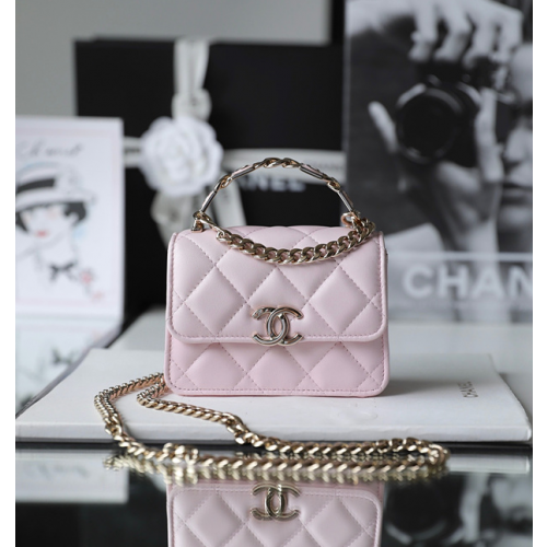• 샤넬 22SS 탑핸들 코코 레터링 체인백 램스킨 라이트골드