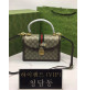 핸드백은 브랜드 시그니처 듀얼 G 패턴 캔버스로 제작