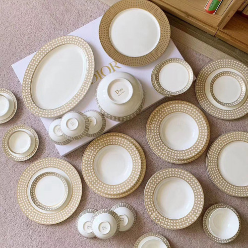 디올의 아이코닉한 까나쥬 패턴과 몽테인 컬렉션이 만나 완성된 우아한 식기 세트