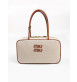 가죽 트림과 로고로 포인트를 준 뉴트럴 컬러의 캔버스 소재