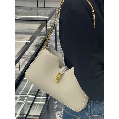 가로형 실루엣에 깔끔한 골드 체인 디테일과 회전식 잠금 장치로 한층 고급스러운 무드 연출