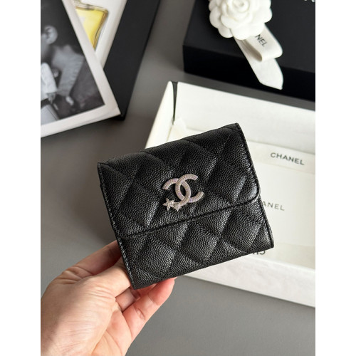 샤넬 25B CC 별 로고 캐비어 플랩 지갑 (컬러 블랙)