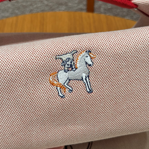 정면에는 에르메스 상징인 말 & 그루밍 일러스트가 자수로 들어가