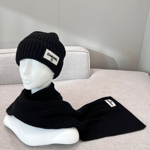 샤넬 라벨 패치 리브 니트 비니 & 머플러