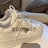 박스를 열자마자 느껴지는 건 심플함 속의 세련됨이었어요. 군더더기 없는 올 화이트 레더에, 옆면에 딱 자리 잡은 삼각 메탈 로고가 존재감을 확 살려줍니다. 흔한 화이트 스니커즈 같지만, 가까이 보면 박음질과 디테일이 다르다는 게 느껴지더라고요.